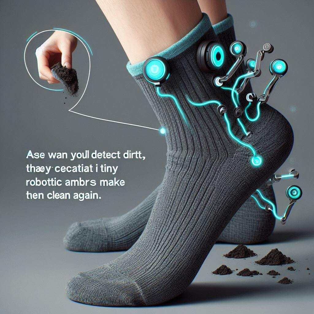Samočistící ponožky – Ponožky, které nikdy nebudete muset prát. Jakmile ucítí špínu, aktivují miniaturní robotické ruce, které je učiní zase krásně čistými.