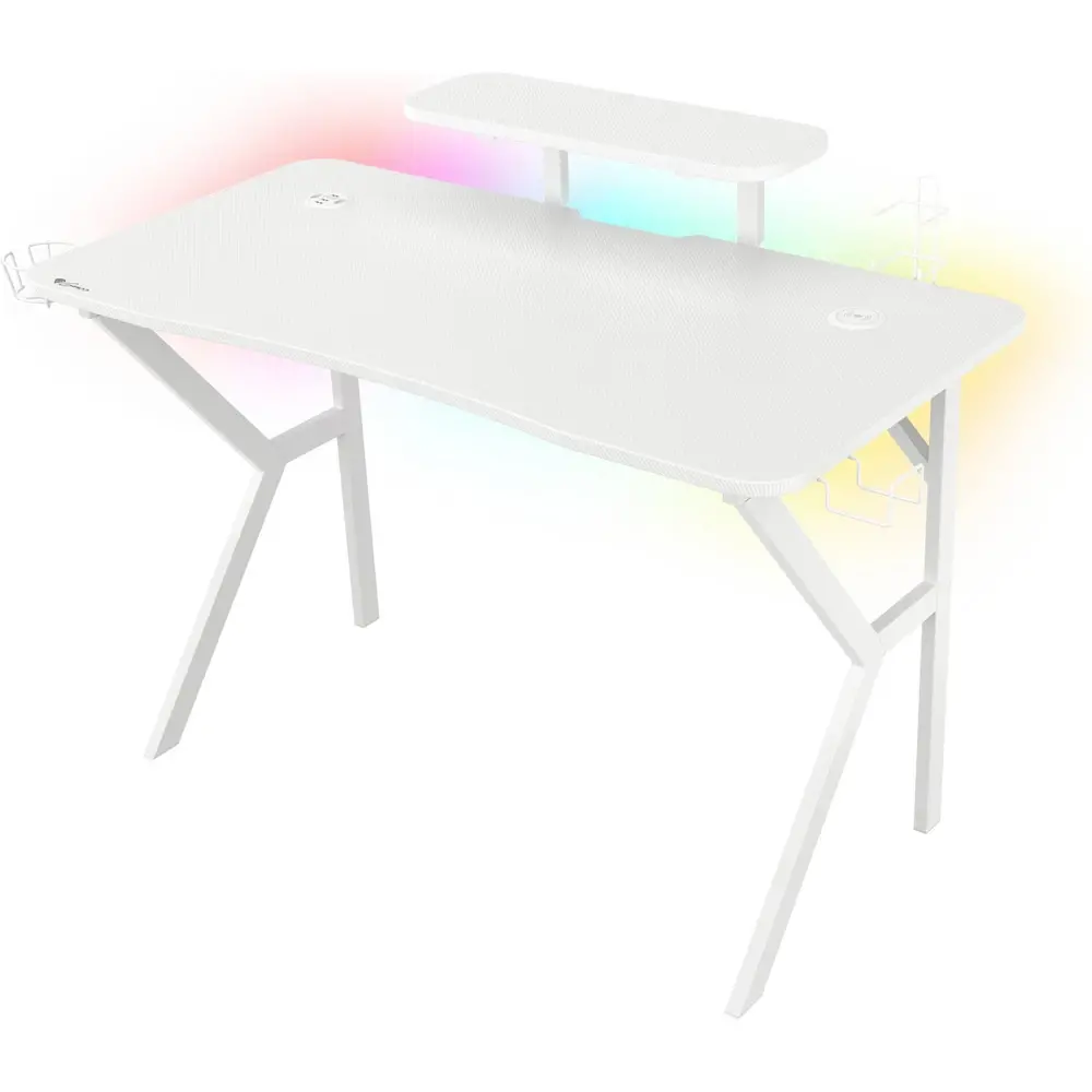 - Klíčové vlastnosti: Genesis Holm 320 RGB je snem pro všechny, kteří milují herní estetiku a chtějí si užít atmosféru herní stanice. Tento stůl nabízí RGB podsvícení, které si můžete nastavit podle svých preferencí, a vestavěný USB hub, který vám usnadní připojení různých zařízení. Navíc disponuje úložnými prostory a praktickými držáky na sluchátka nebo pití.