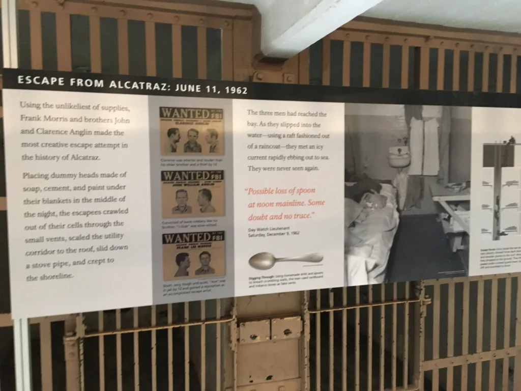 Nejméně 36 vězňů se pokusilo o útěk z Alcatrazu, ačkoliv údajně úspěšný byl pouze jeden případ. Nejznámější je útěk tří mužů – Franka Morrise a bratří Anglinů – v roce 1962. Tito muži se pomocí improvizovaných nástrojů postupně probourali zdí, zhotovili si z plášťů plovák a vydali se na otevřený oceán.
