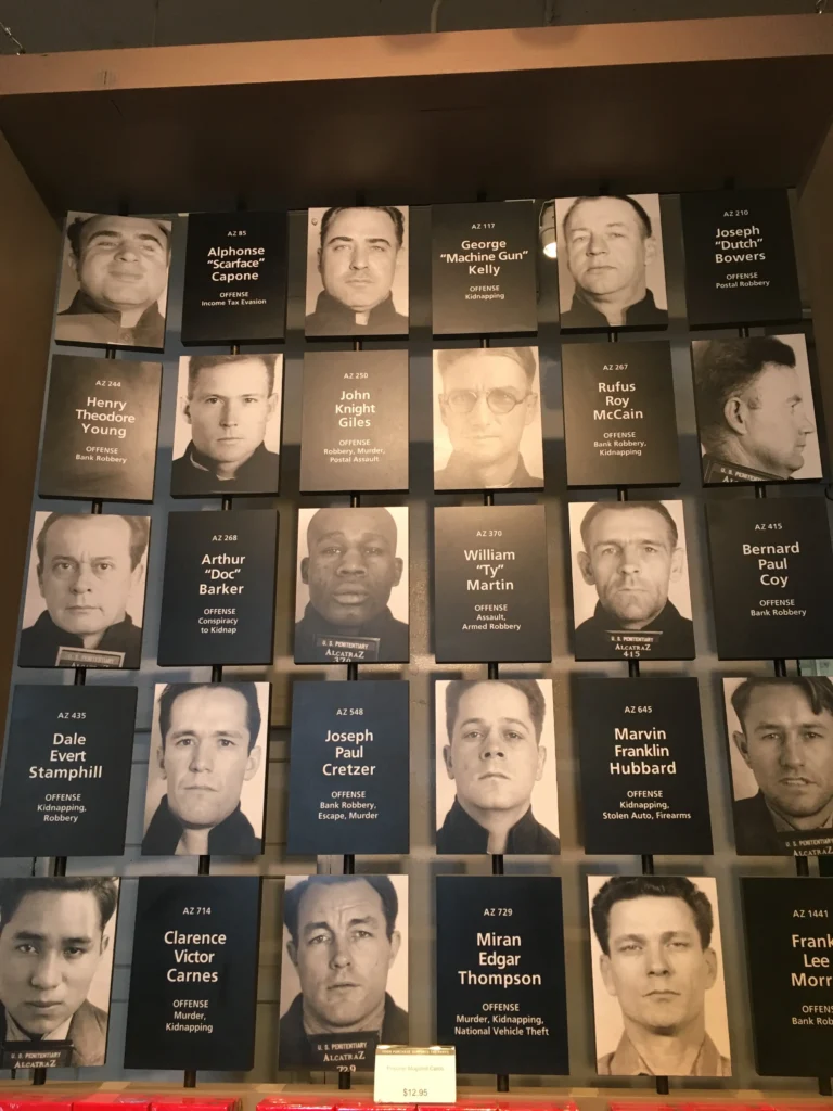 Al Capone, jeden z nejznámějších amerických gangsterů, strávil v Alcatrazu necelých pět let. Vězení ho mělo zkrotit, což se docela podařilo – Al Capone se dokonce účastnil hudebních vystoupení v tamní vězeňské kapele. Právě kvůli tvrdým pravidlům a izolaci si začal stěžovat na zdraví, což mělo nakonec za následek jeho propuštění.