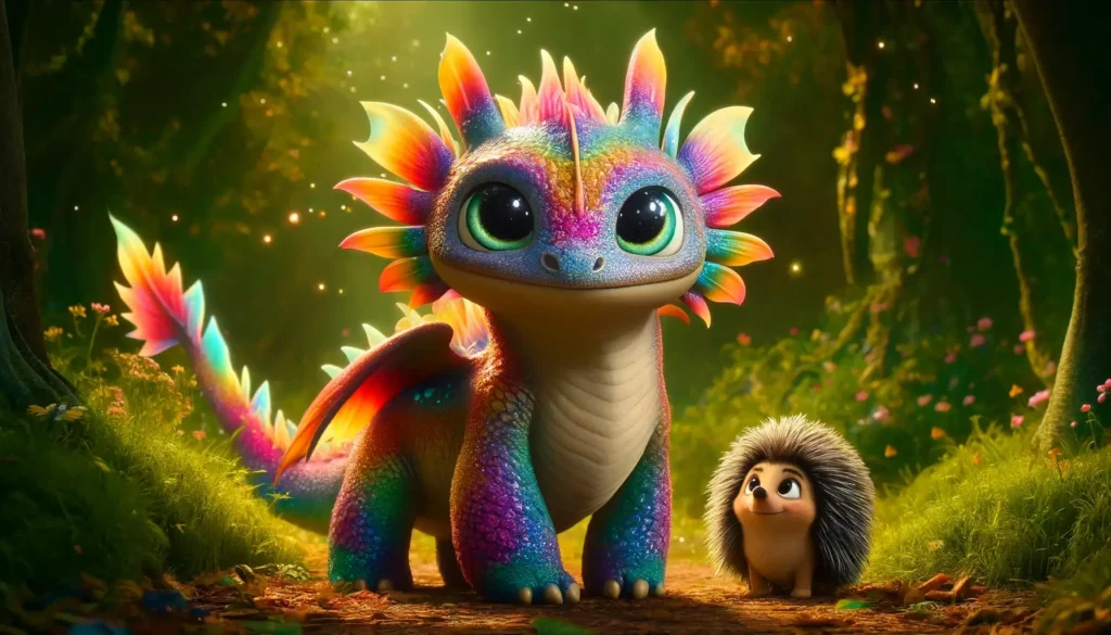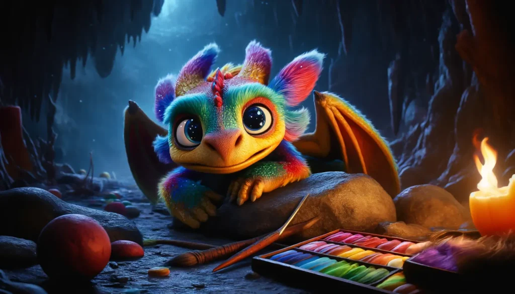 Když Fufík dokončil své vyprávění, objal své rodiče a společně pozorovali, jak první paprsky ranního slunce pronikají do jejich duhové jeskyně, rozehrávající další den plný možností a dobrodružství.