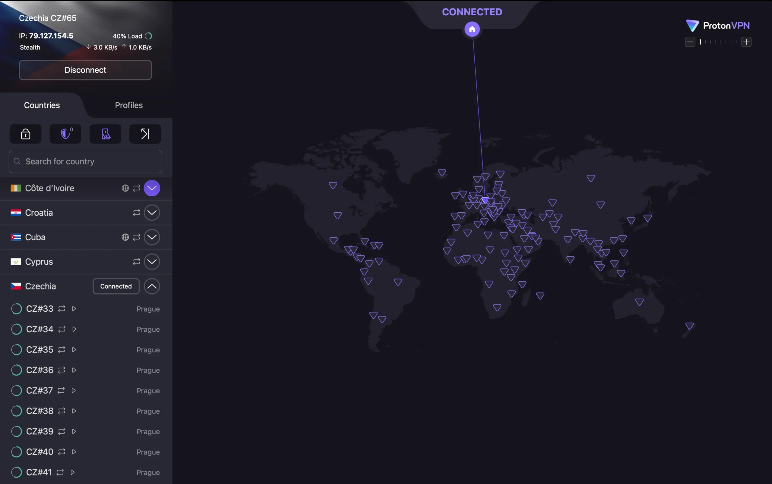 S více než 16 800 servery ve 125+ zemích má ProtonVPN jednu z nejrozsáhlejších sítí na trhu. Ale nejde jen o kvantitu jejich servery běží na 10 Gbps připojení, což znamená, že můžete streamovat 4K video, hrát online hry nebo stahovat velké soubory bez zadrhávání.