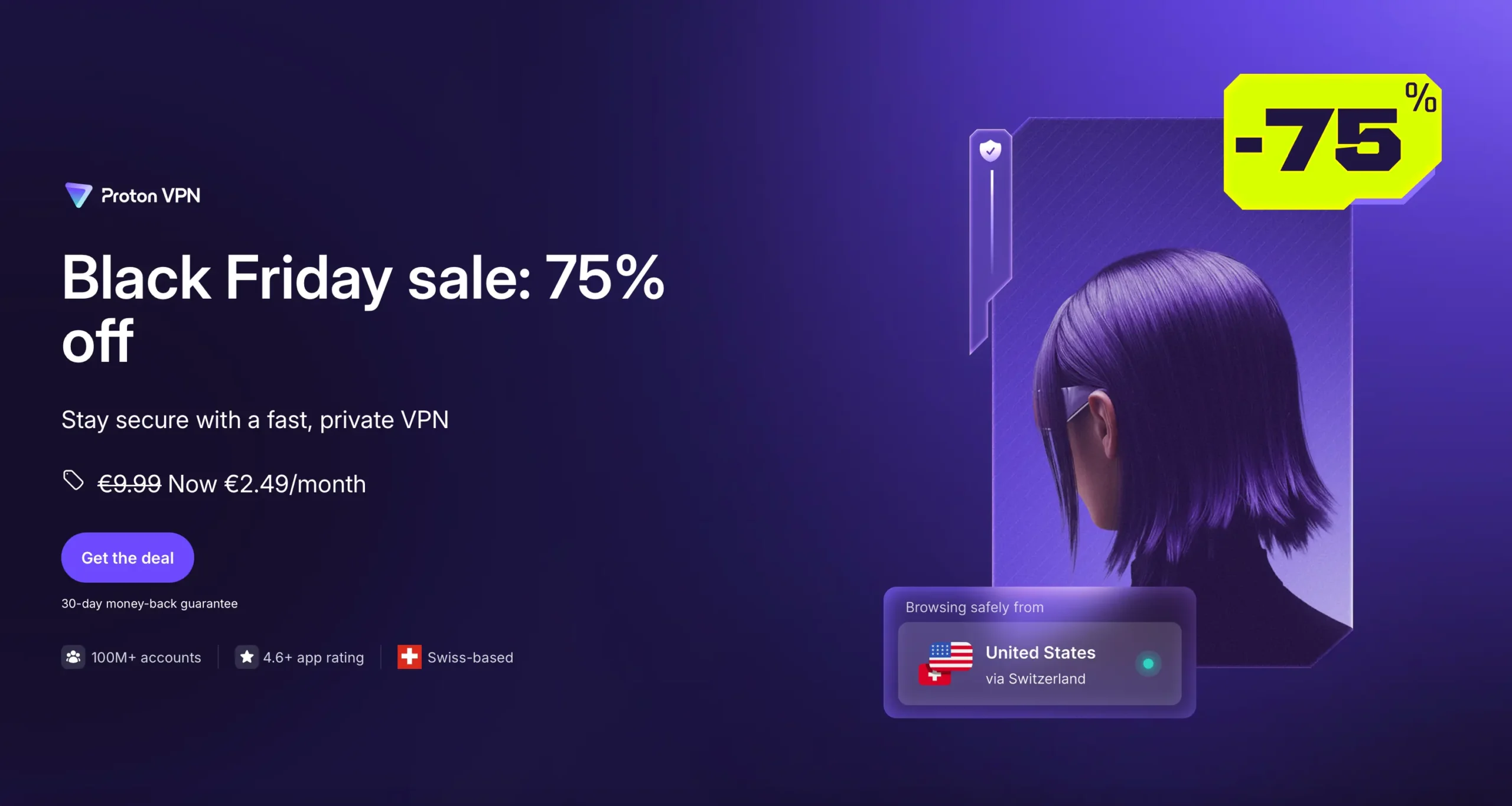 Nebudeme vám lhát, pravděpodobně nikdy už neuvidíte ProtonVPN za tak nízkou cenu. Toto je kombinace Black Friday šílenství a naší exkluzivní dohody, která se možná už nikdy nebude opakovat.