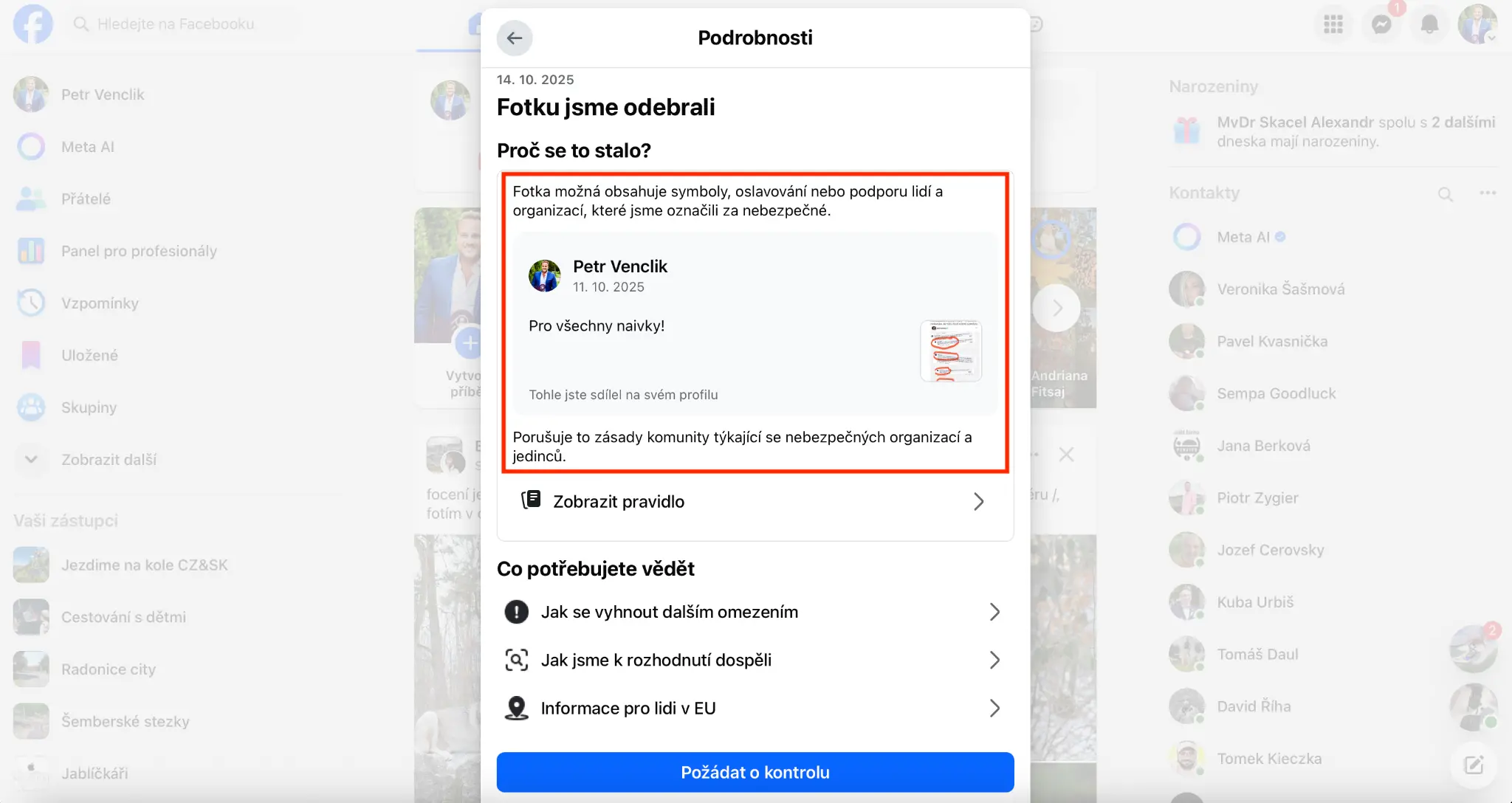facebook fotka poruseni pravidel nebezpecne organizace