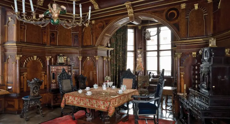 - Lovecký sál – místnost plná trofejí a luxusního vyřezávaného nábytku