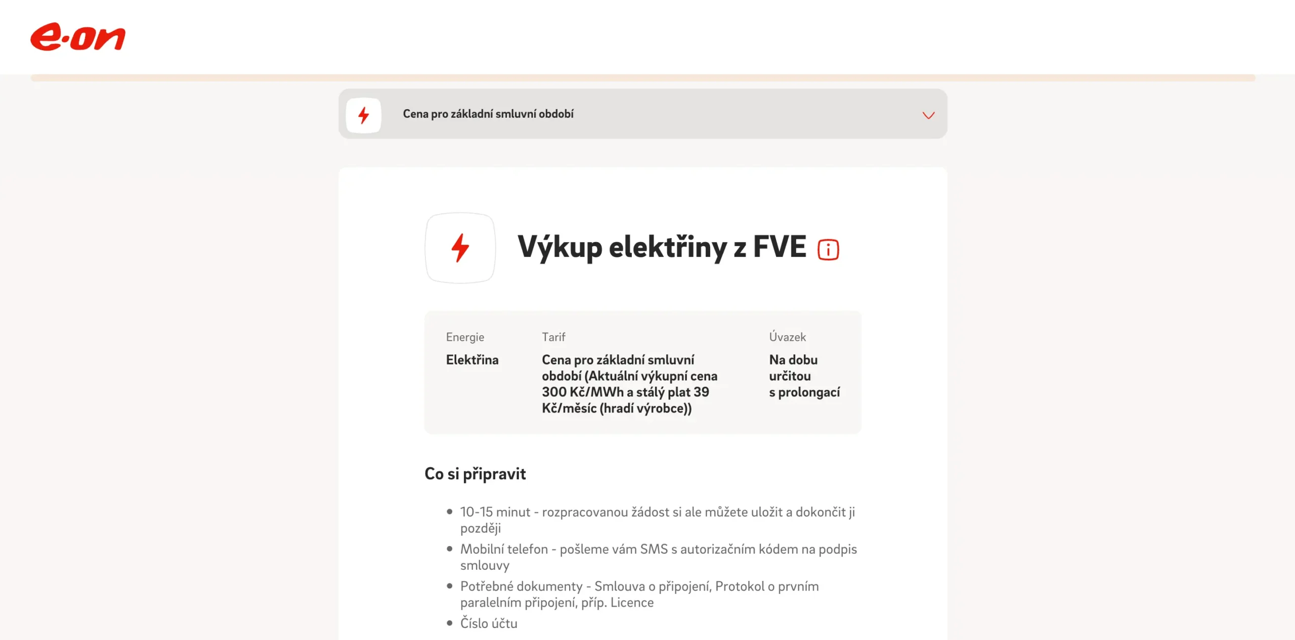 Včera ráno mi od E.ONu dorazila nabídka na výkup přebytků – 300 Kč za MWh. Přičtěte si k tomu měsíční poplatek 39 Kč a dostáváme se na čísla, která by mohla být použitá jako vtip na energetickém stand-upu. Pokud to přepočítáte, zjistíte, že mi za celý rok přebytků nabízejí asi 900 Kč. Ano, opravdu devět set korun. Za to si mohu koupit jednu lepší večeři, možná včetně nápoje, ale jen pokud nepůjdu do centra Prahy.