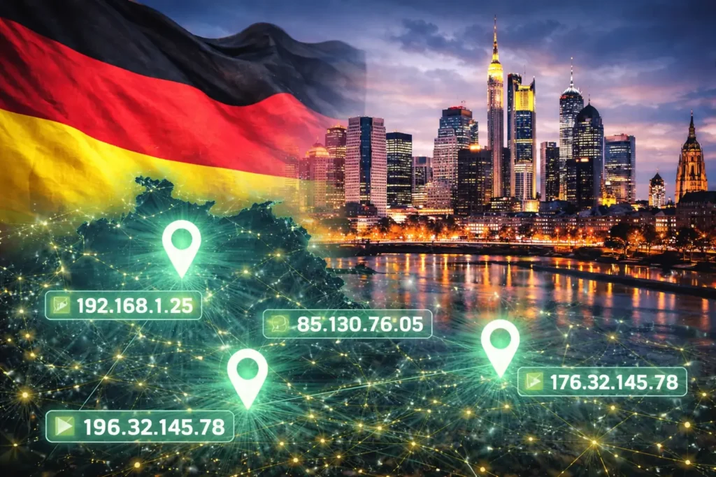 Frankfurt není náhodná volba. Je to jedno z největších internetových center v Evropě (DE-CIX), kde sídlí stovky poskytovatelů a datacenter. Získání IP z Frankfurtu vám často zajistí: