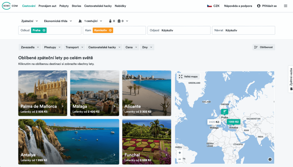 Dnes mám pro vás super zprávu! Už nemusíte trávit hodiny proklikáváním se po nesčetných webech a srovnávačích, abyste našli tu nejlevnější letenku. Konečně si ji totiž můžete rezervovat nejlevnější letenky přímo u nás na webu, a to ve spolupráci s Kiwi.com!