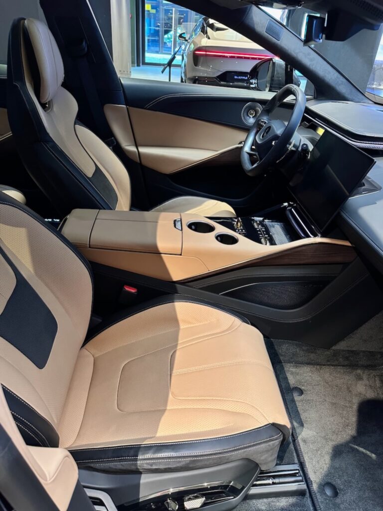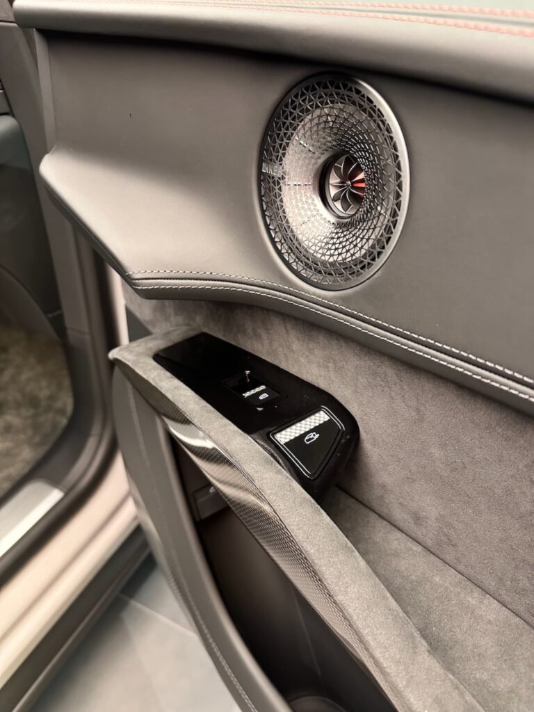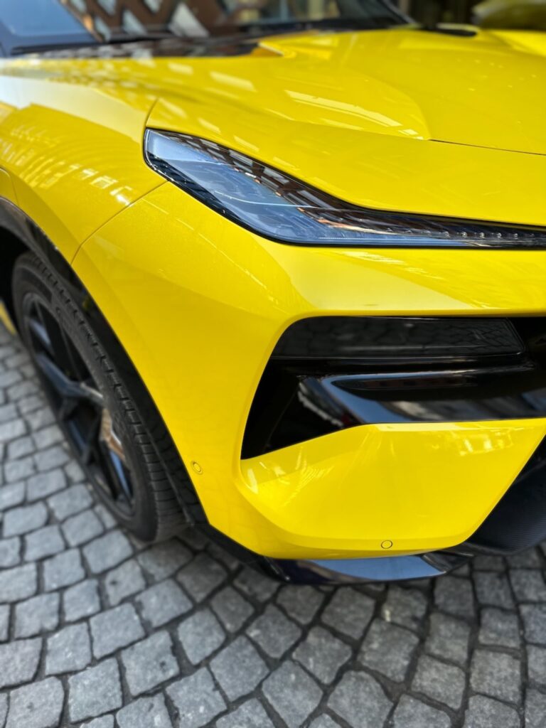 Auto na první pohled vypadá jako ze sci-fi filmu (trochu mi připomíná Lamborghini Urus). Jeho futuristický design přitahuje oči každého návštěvníka, který jde kolem. Když jsme se přiblížili, uchvátila mě agresivní přední část s nadupaným výrazem a LED světlomety, které autu dodávaly pronikavý a extrémně dravý pohled.