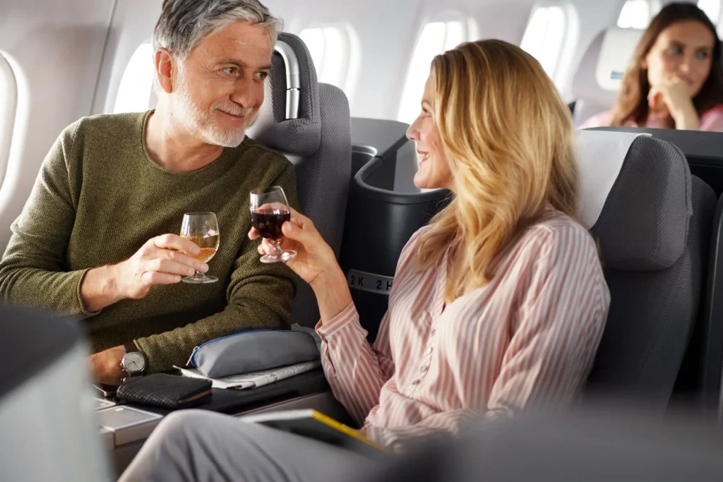 Během letu si můžete vychutnat kvalitní víno, pivo, nealkoholické nápoje, kávu nebo čaj. A co se týče jídla, dostanete nejen předkrm, ale také výběr z teplého hlavního jídla a lahodný dezert.