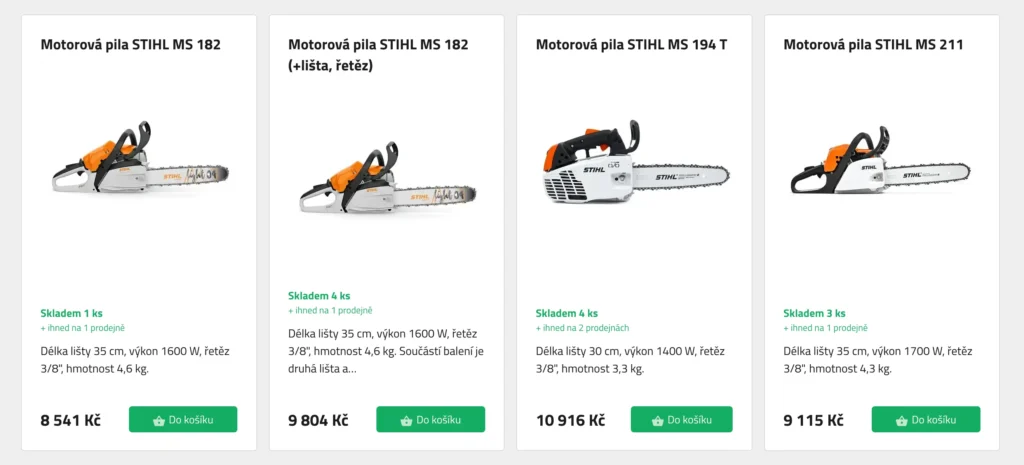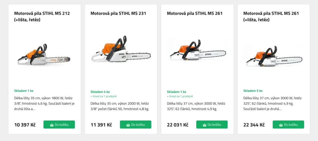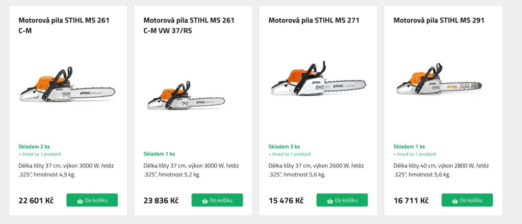 Aktuální skladovost a další varianty najdeš na jarabak.cz/benzinove-pily-stihl/.