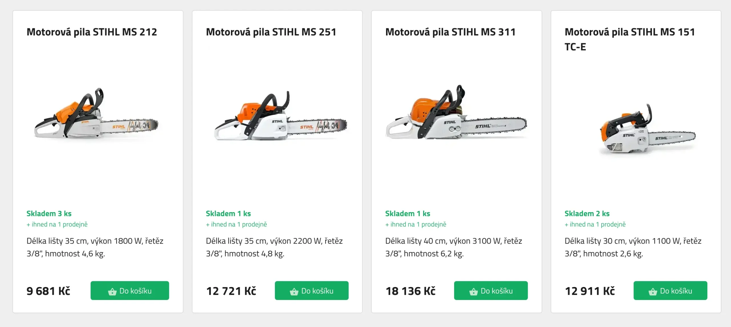 | MS 181 | 35 cm / 1500 W | 4,3 kg / 7 875 Kč |