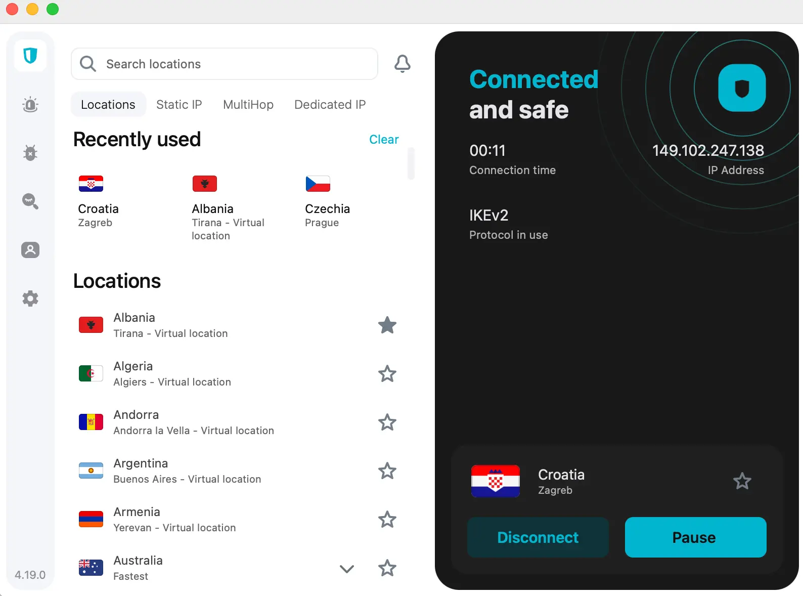 NordVPN v Chorvatsku funguje naprosto bezchybně. Má velmi rychlé české servery a díky funkci Threat Protection chrání i proti virům a sledovacím skriptům. Připojení je stabilní i na sdílené WiFi v hotelu nebo kempu.