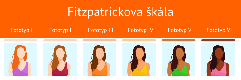 Fototyp určuje, jak vaše kůže reaguje na sluneční záření. Ovlivňuje to genetika i četnost vystavení slunci. Fototypy se dělí následovně: