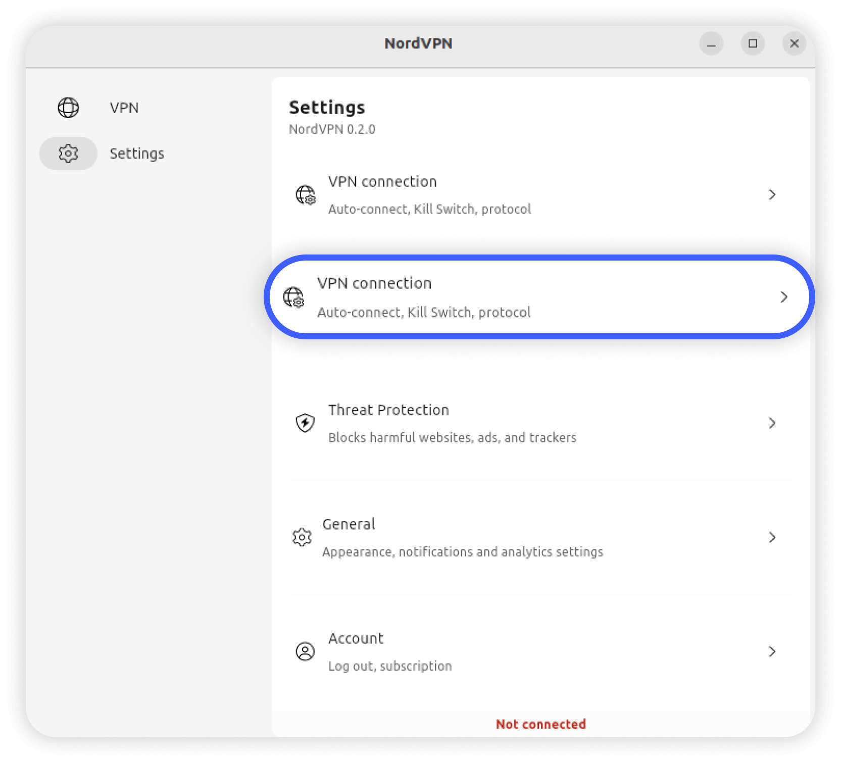 NordVPN GUI vám umožní změnit protokol přímo v nastavení.