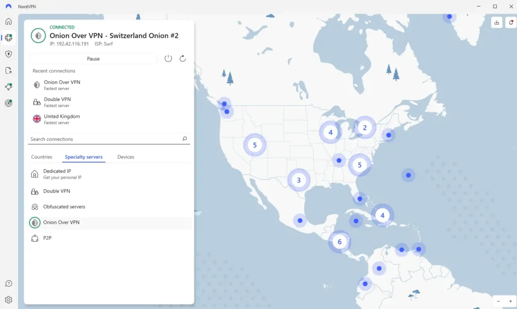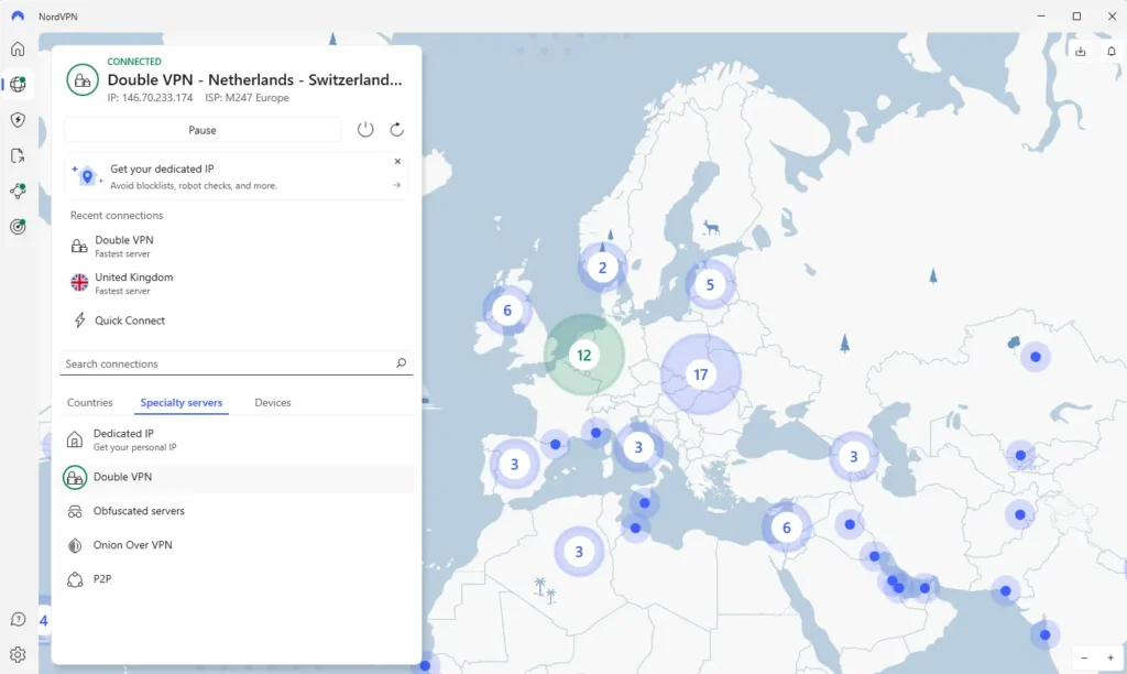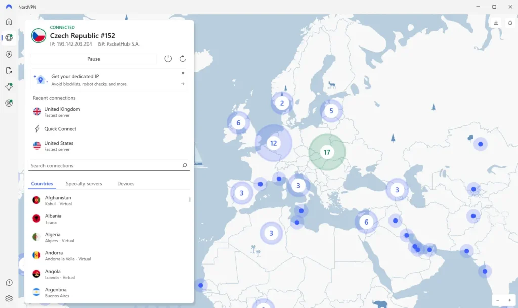 NordVPN umožňuje uživatelům snadno přepínat mezi serverovými lokacemi, což je výhodné pro ty, kteří cestují, nebo potřebují přistupovat k obsahu specifickému pro určité regiony.