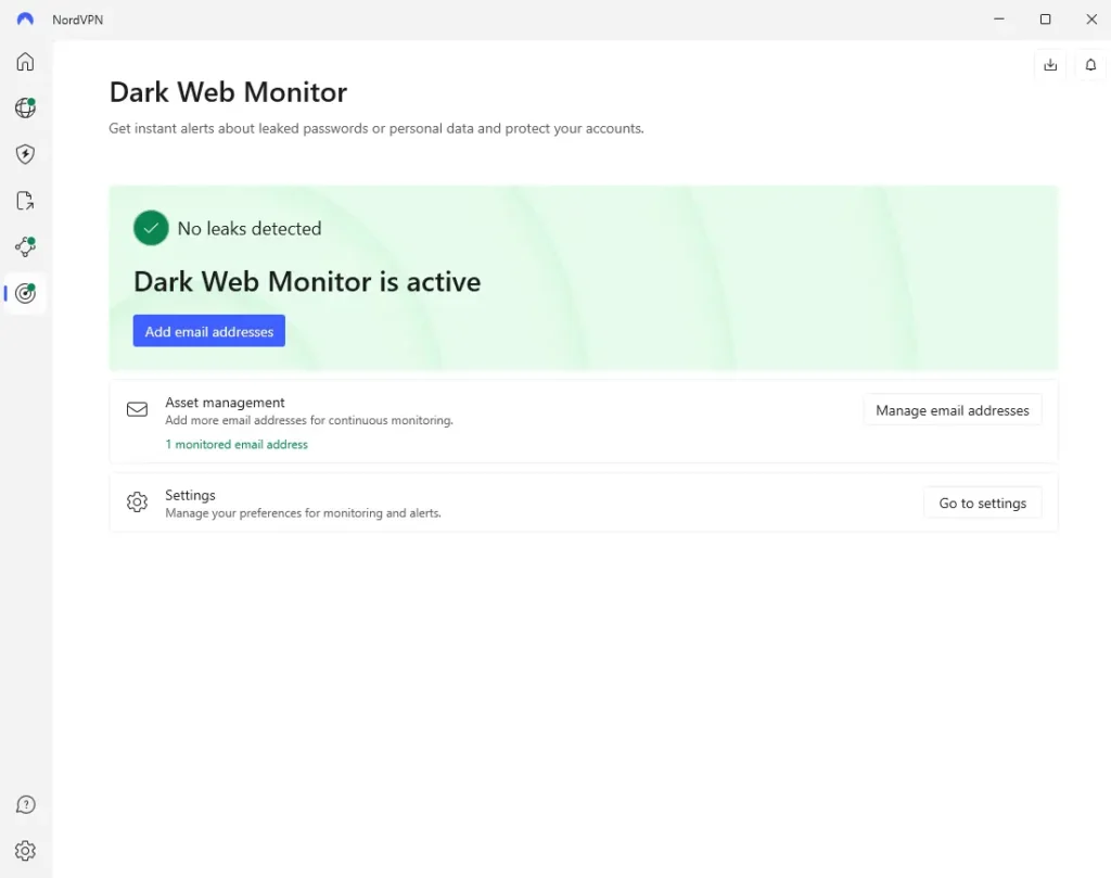 - Darkweb Monitor: Tohle je funkce, která ti hlídá záda. Jakmile někde na dark webu (prostě v těch horších koutech internetu) uniknou tvoje přihlašovací údaje nebo email, NordVPN tě na to okamžitě upozorní. Takže když se třeba objeví tvoje mailová adresa v nějakém úniku nebo databázi hackerů, dostaneš alert a můžeš si okamžitě změnit heslo.
