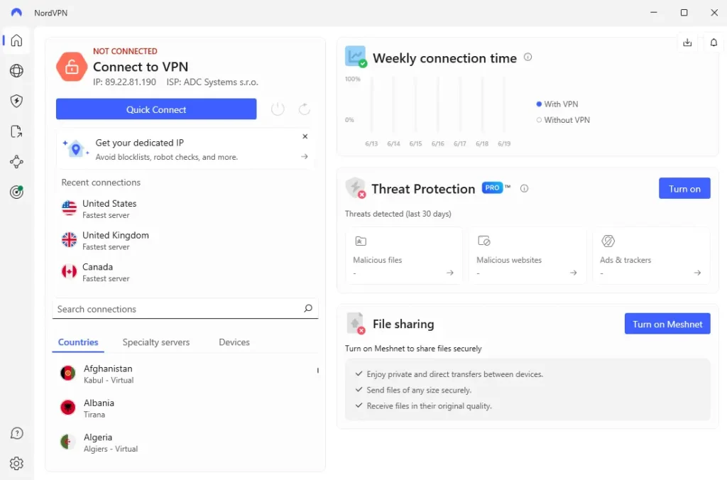 Rychlost: NordVPN je často oceněna za své rychlé rychlosti připojení, což je klíčové pro streamování, hraní online her, nebo stažení velkých souborů.