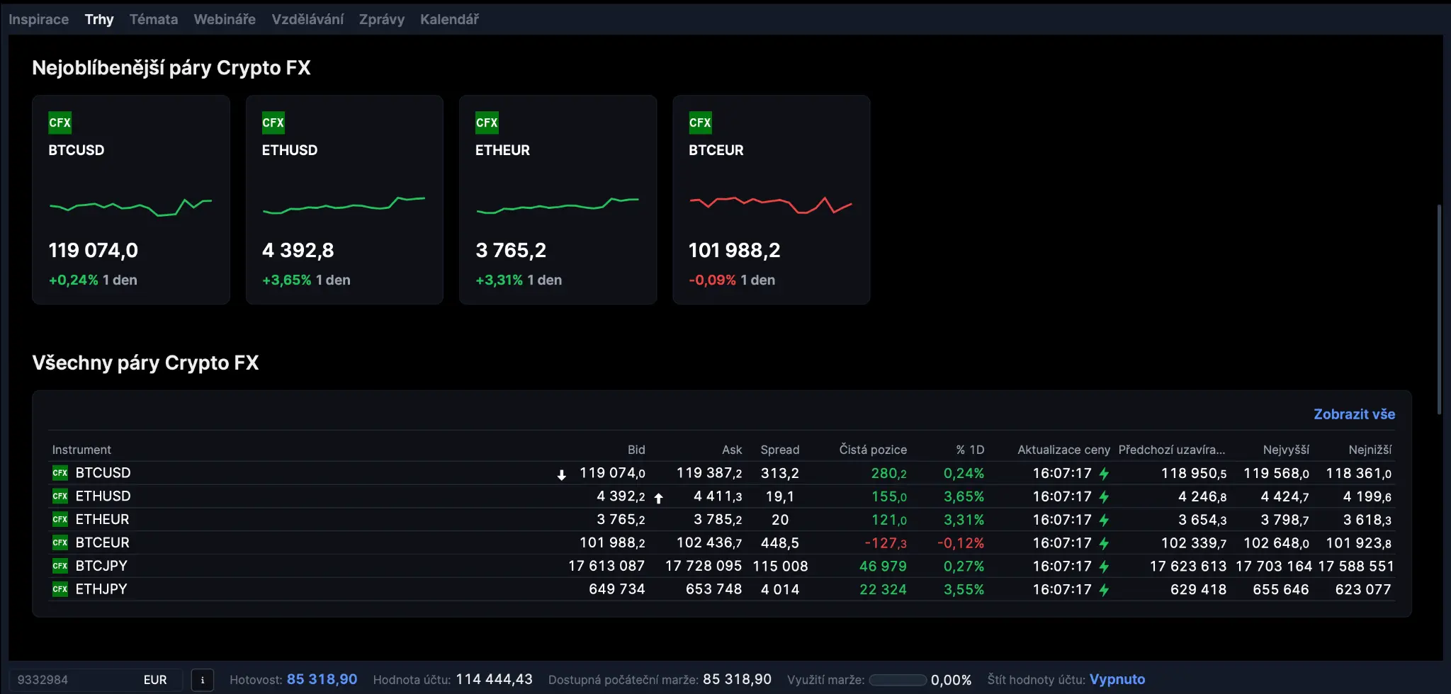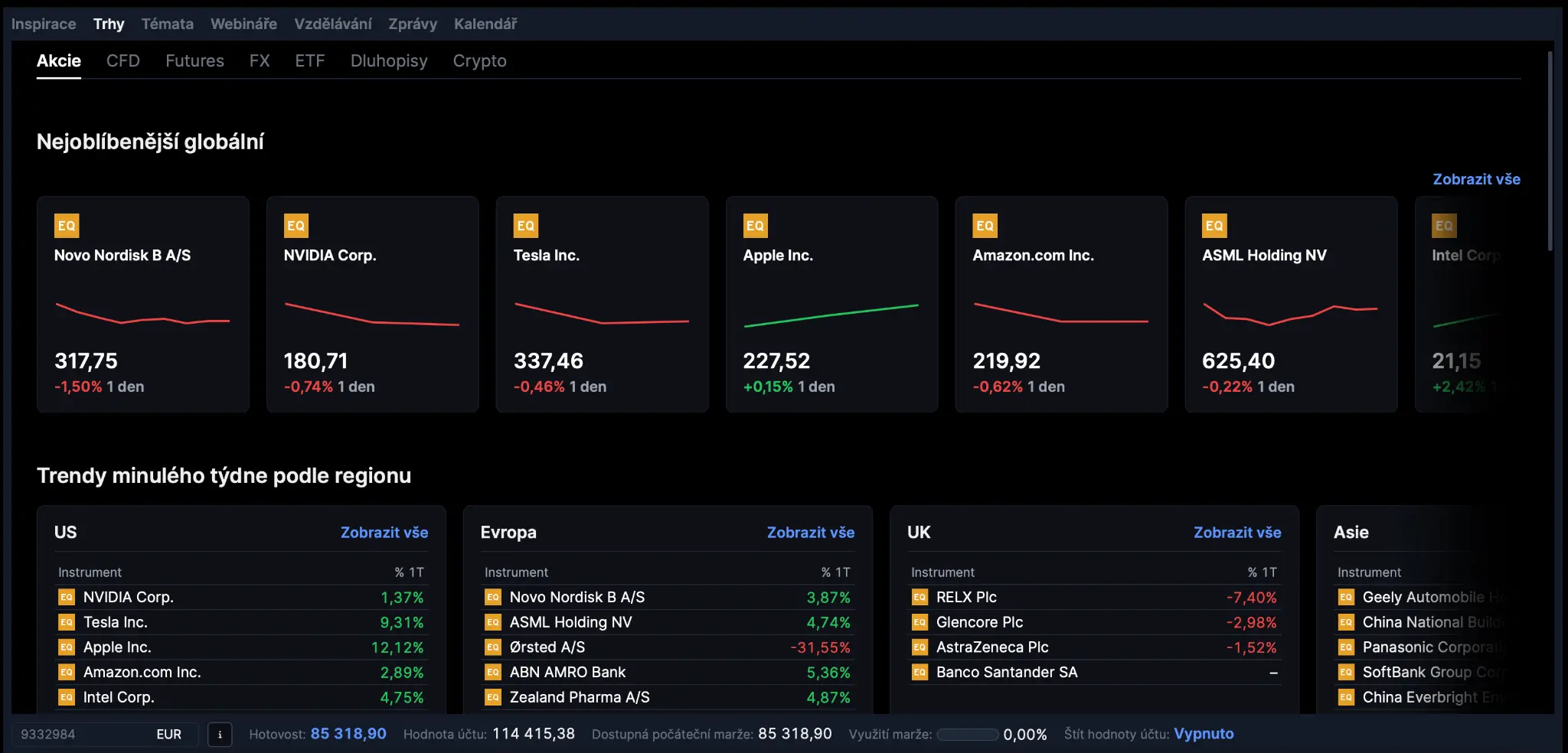 - Nízká konverze měny. Jen 0,25 % – to je výrazně míň než třeba u XTB nebo eToro.