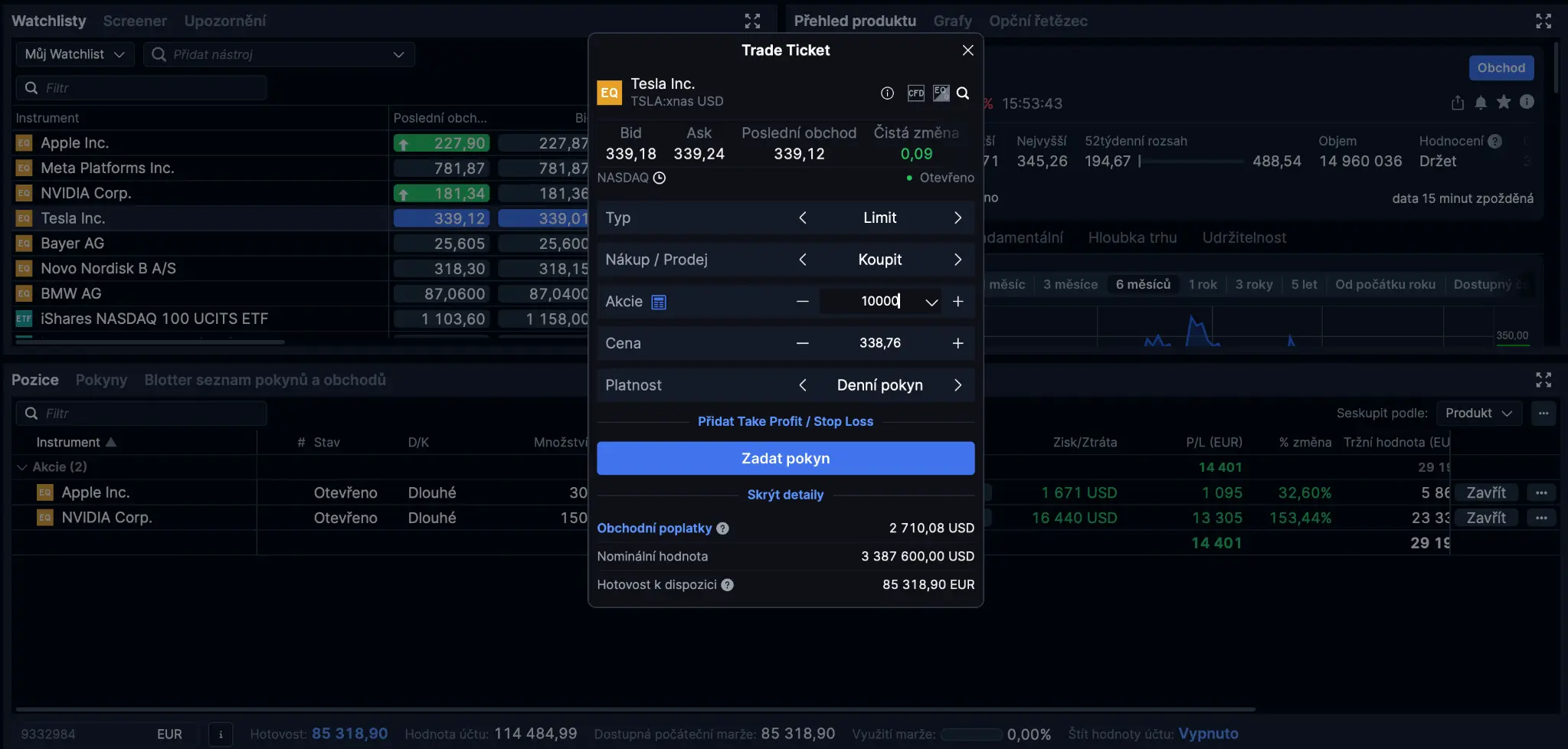 - Platforma je hodně funkční, ale není to úplně pro začátečníky. Pokud jste zvyklí na „hračky“ typu eToro nebo Portu, Saxo na vás možná působí seriózněji. Ale po pár dnech vám to začne dávat smysl – a oceníte ten profesionální přístup.