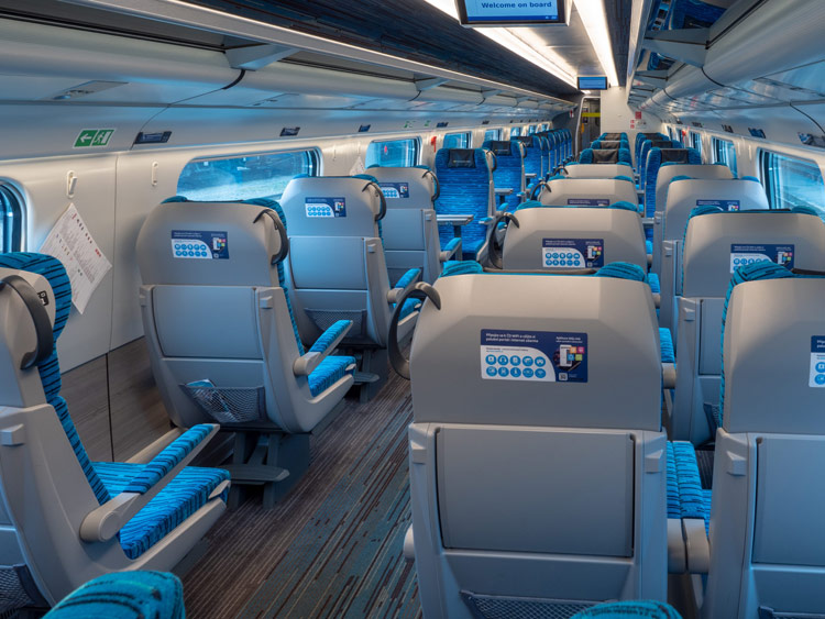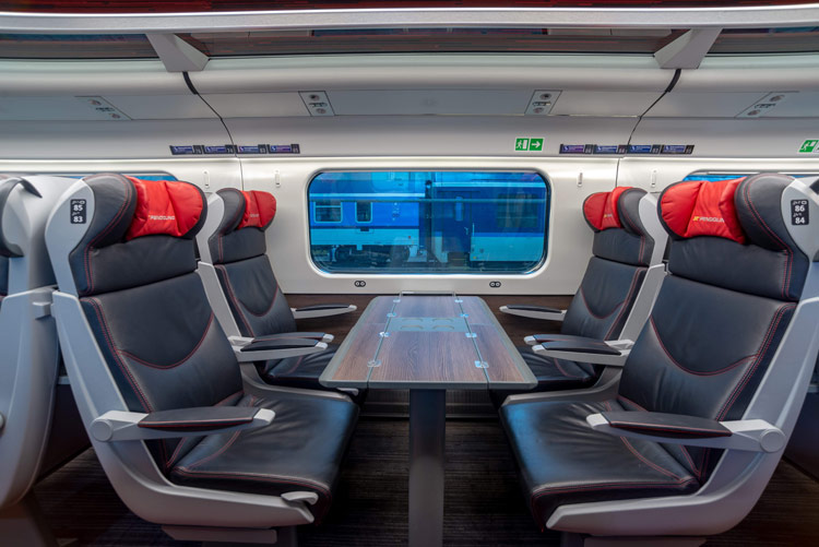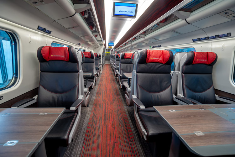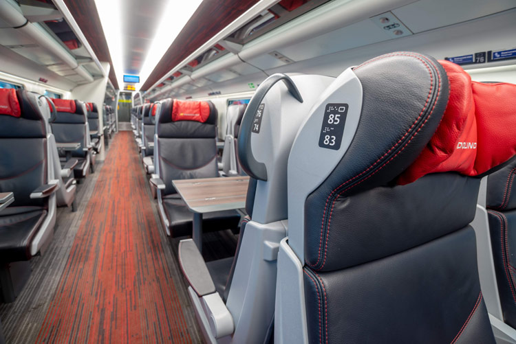 - Druhá třída: Nenechte se, prosím, zmást názvem, i druhá třída poskytuje vysoký standard pohodlí. Sedadla jsou čalouněná látkou, avšak rovněž komfortní, k dispozici je klimatizace, elektrické zásuvky a WiFi připojení. Pro běžné cestování se jedná o ideální volbu s rozumným poměrem ceny a kvality.