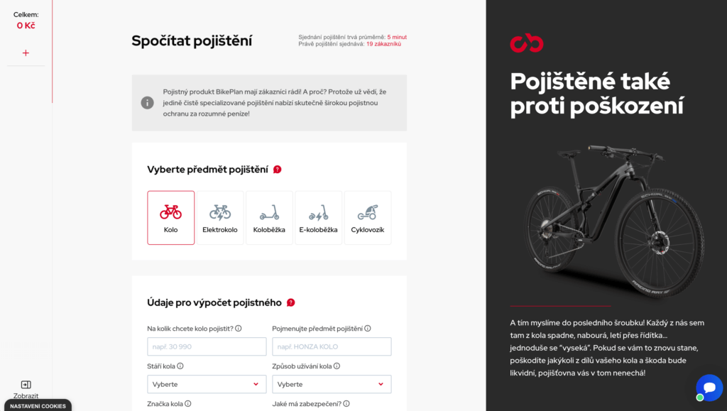 - Vstup na web: Prvním krokem je návštěva webové stránky BikePlan, kde najdete CTA tlačítko nebo odkaz pro sjednání online pojištění. Tento odkaz vás přesměruje na stránku s přehledným online formulářem.