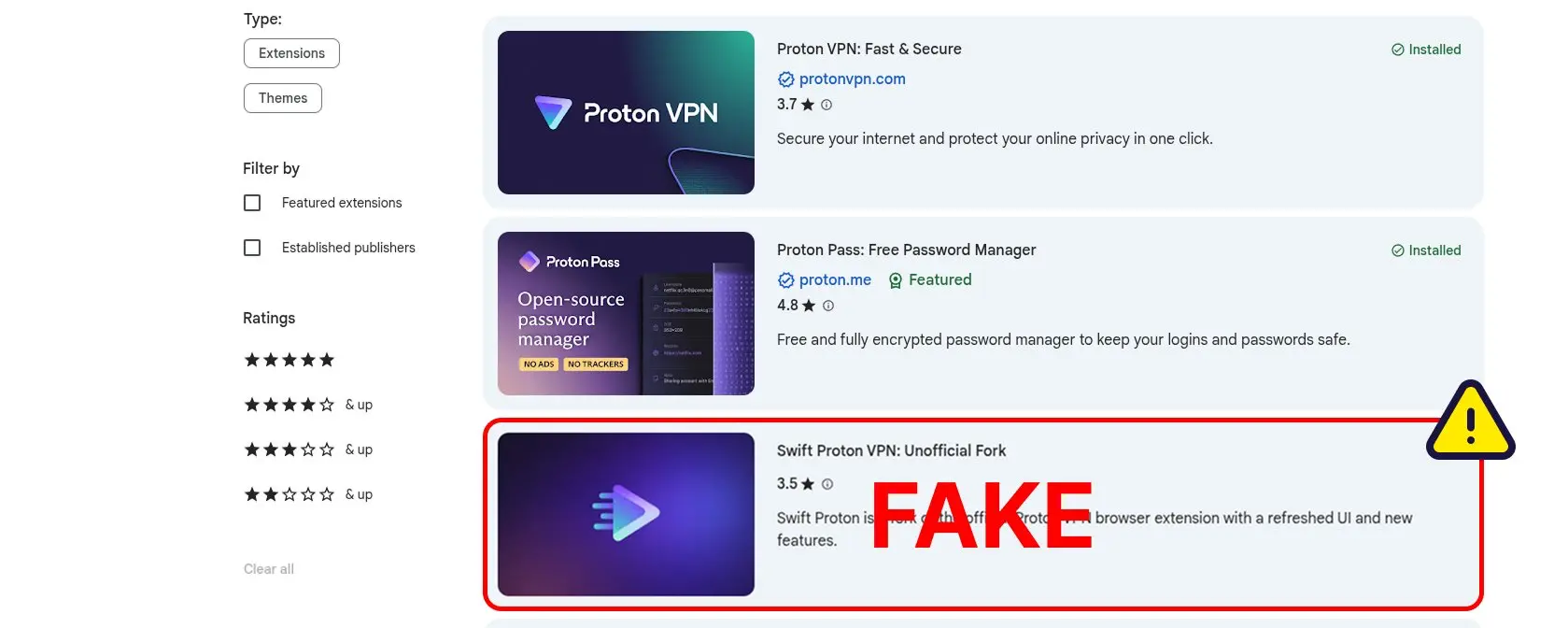 Podvodníci v Chrome Web Store napodobují Proton VPN Neinstalujte neoficiální verze