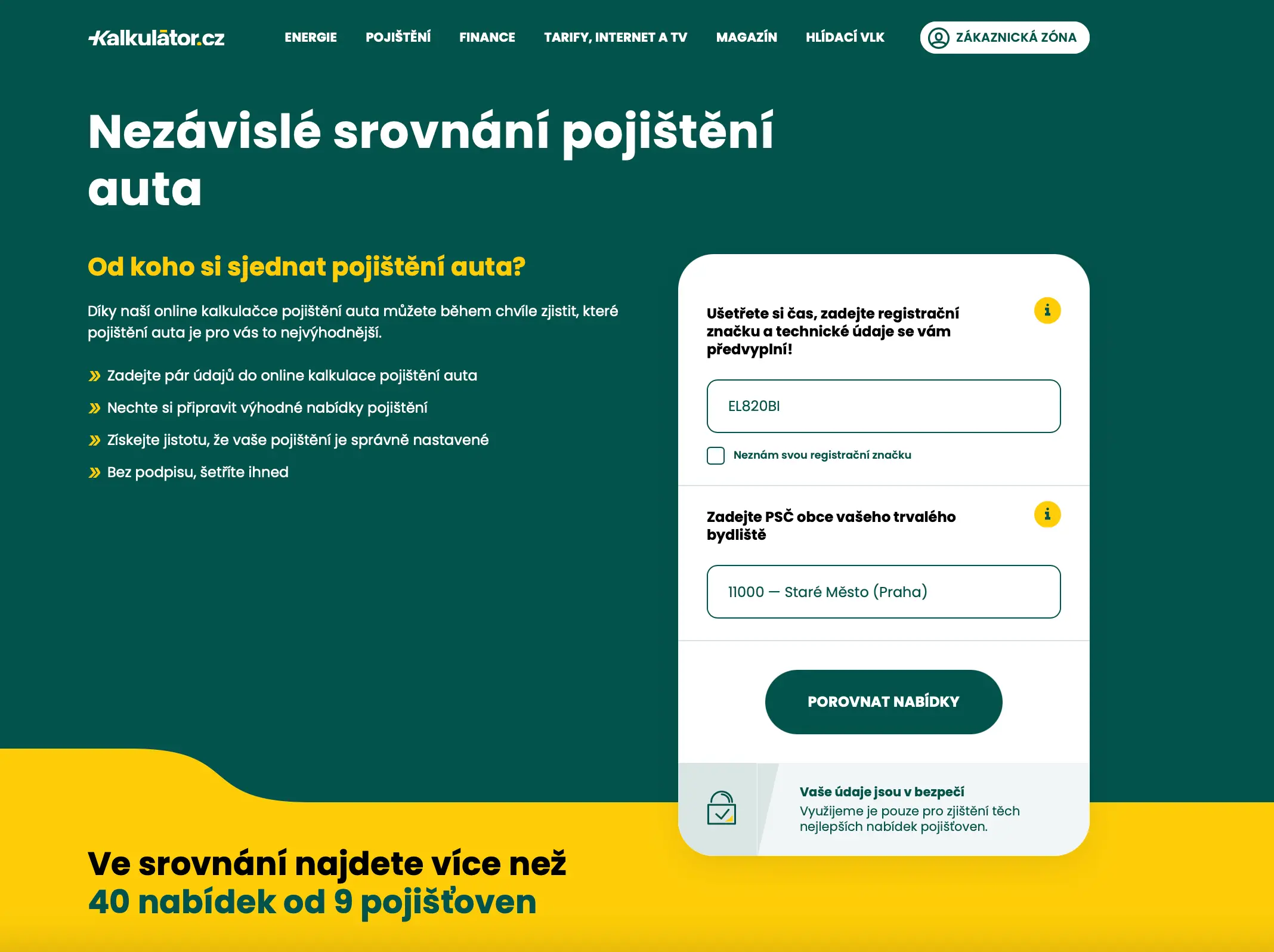 📌 Doporučení: Chcete-li rychlé srovnání a pohodlné sjednání pojištění, Kalkulátor.cz stojí za to vyzkoušet! Minimálně nic nezkatíte a porovnáte si trh, abyste se mohli kvalifikovaně rozhodnout a najít tak nejlepší povinné ručení pro vaše auto.