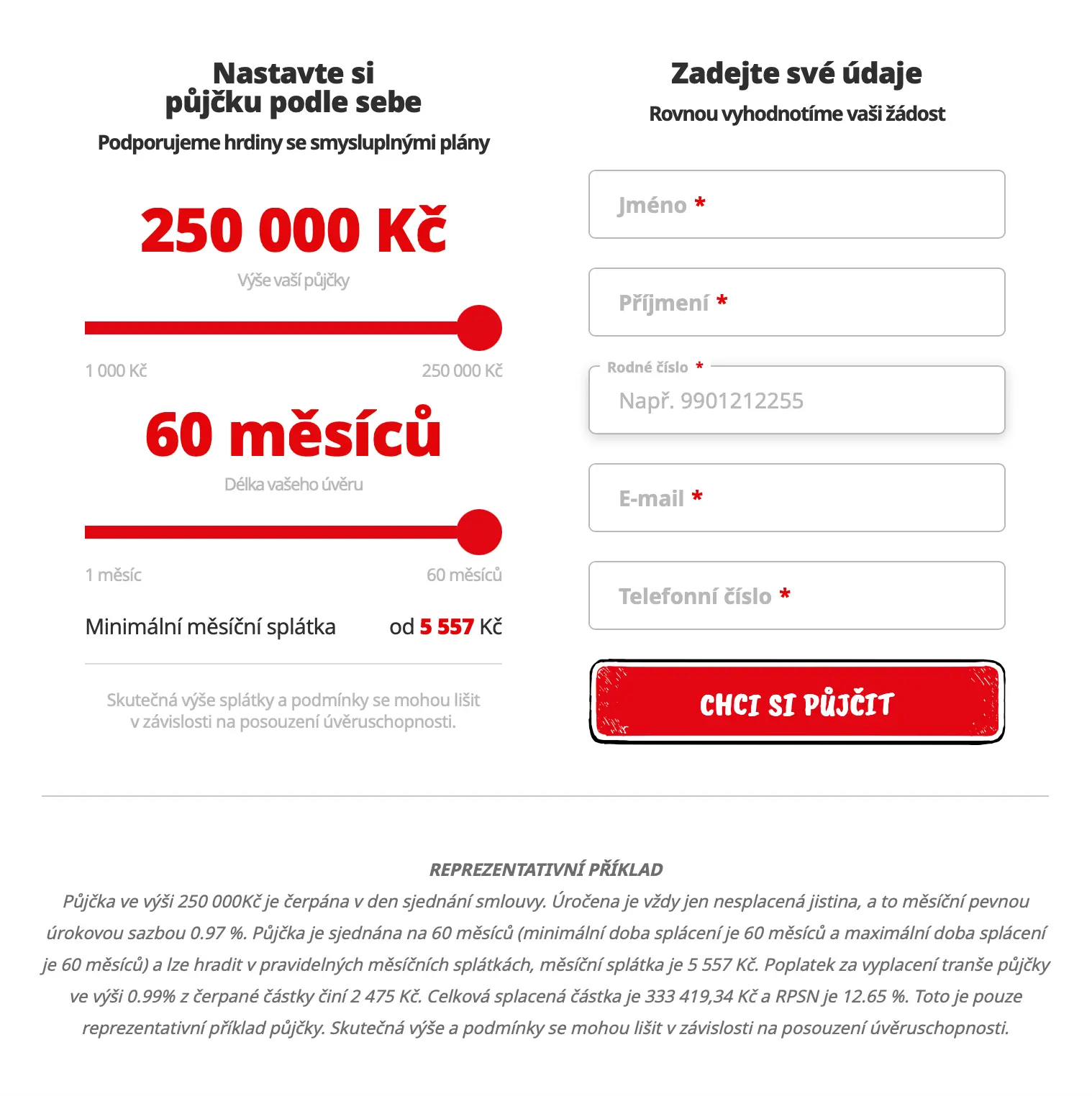 RPSN 12,65 %, úrok 0,97 % měsíčně, celkem zaplatíte 333 419 Kč.