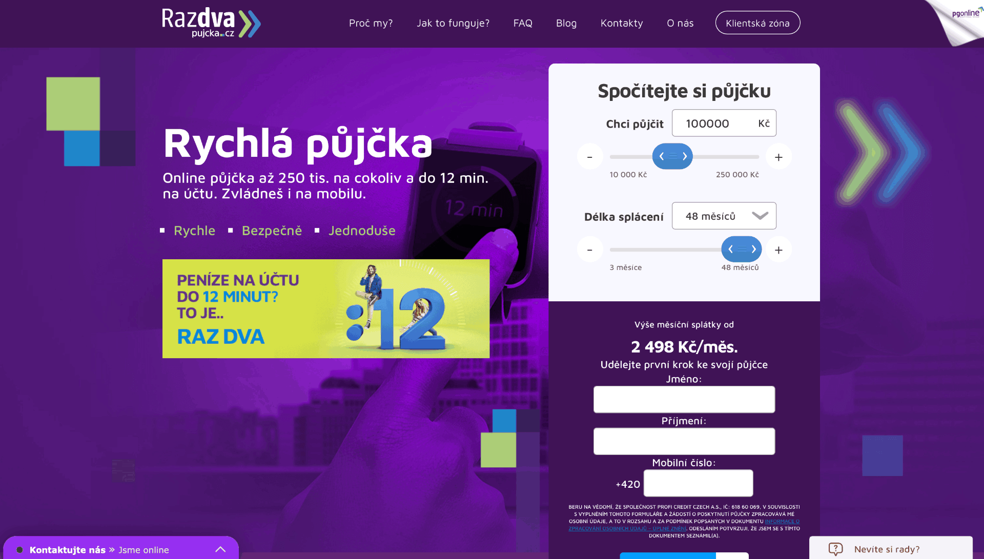 - Rychlé vyřízení: Půjčku si můžete sjednat online během několika minut, a peníze vám budou zaslány na účet nejpozději do dvou dnů od podpisu smlouvy.