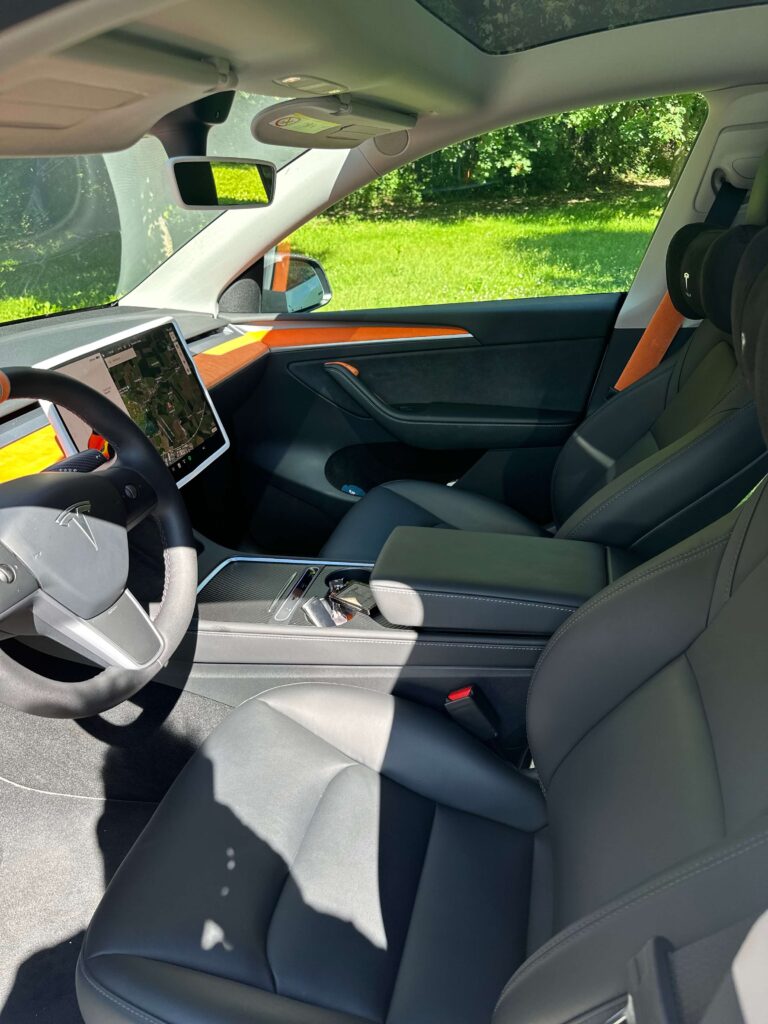 Když pak vcházím do garáže, nečeká mě žádné nepříjemné překvapení. Systém Keyless-Go, respektive bezklíčový vstup, funguje zcela bezchybně. Stačí se jen přiblížit k autu a klika dveří, která si už několikrát vyžádala menší zápas v mrazivých dnech, mě přivítá hladkým vysunutím. Místo řidiče v Tesle je pak záležitostí pohodlí a elegance. Sedadla z vegan kůže jsou nejenom etickým, ale i komfortním rozhodnutím – nastavení sedadel si auto pamatuje a automaticky mě uvítá tou pravou pozicí pro mé tělo 80+.