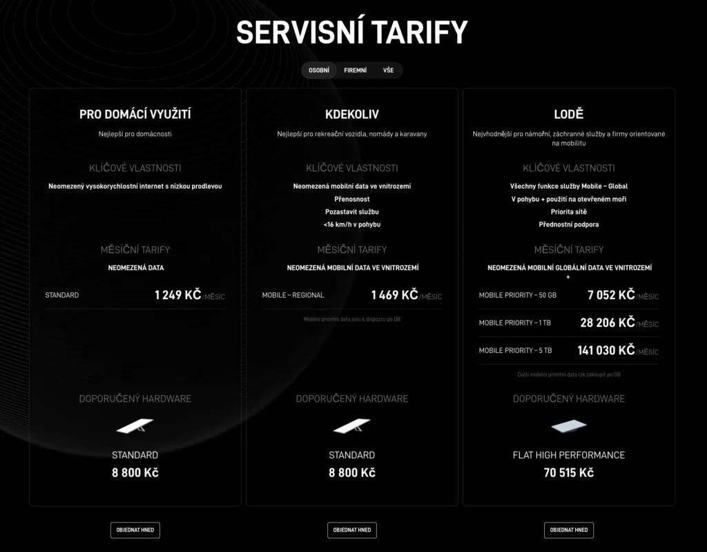 - Cena v ČR: Pro soukromé účely tedy domácnost stojí měsíčně 1249 Kč za měsíc + samozřejmě hardware (anténu) za jednorázovou cenu 8800 Kč.