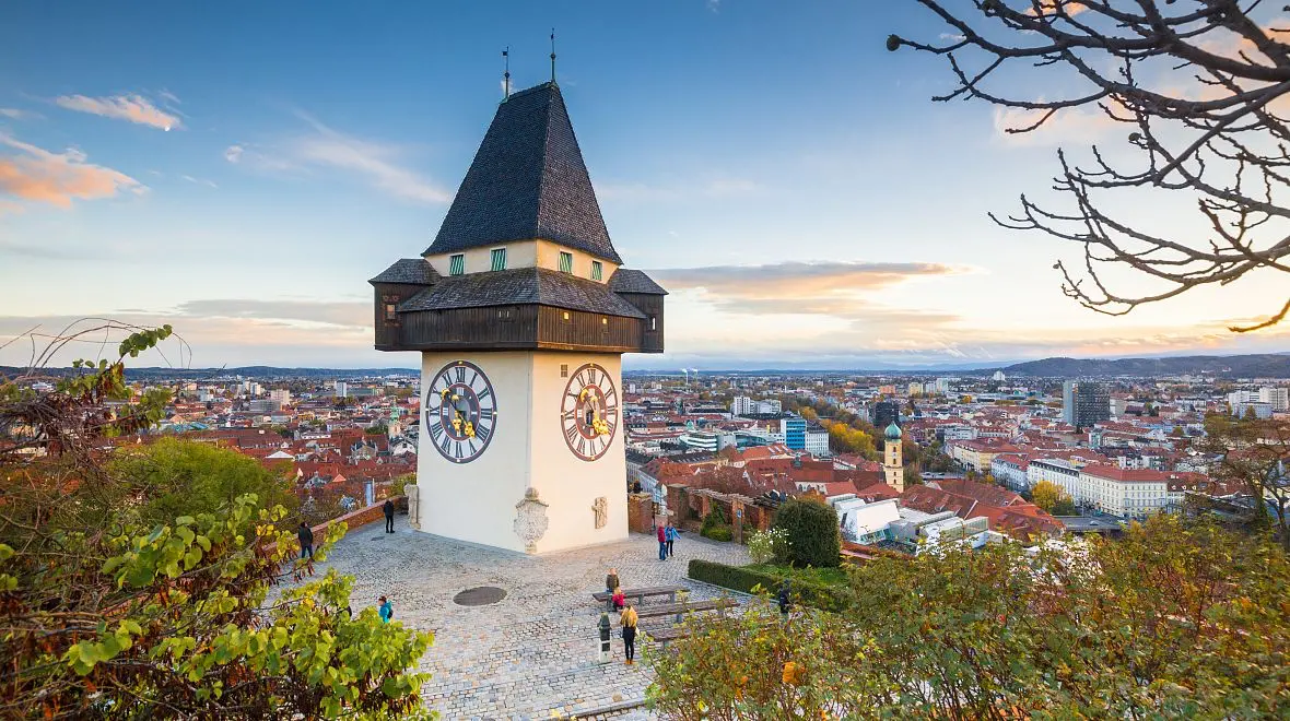 Jedna z věcí, kterou si Graz dokáže získat napoprvé, je to neuvěřitelné spojení starého a nového. Vystoupejte (nebo vyjeďte lanovkou) na Schlossberg – ten zelený kopec přímo v centru, který se tyčí nad městem a skrývá jak romantiku, tak adrenalin.