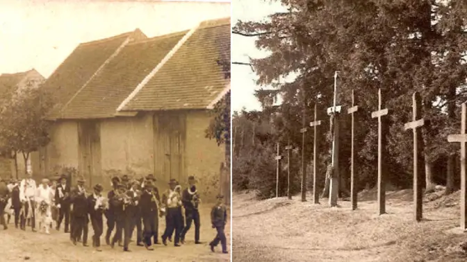 V den svatby se svatební průvod vracel z kostela. Byla to chvíle radosti a slavnosti – nebo alespoň to si svatebčané mysleli. Obchodník, poháněn žárlivostí a touhou po pomstě, se domluvil s místním myslivcem. Jejich plán byl děsivě jednoduchý – potrestat zrádce a zabránit dívce v manželství, které nechtěla. Jakmile průvod dorazil na rozcestí poblíž obce Hluboká, začalo krveprolití.
