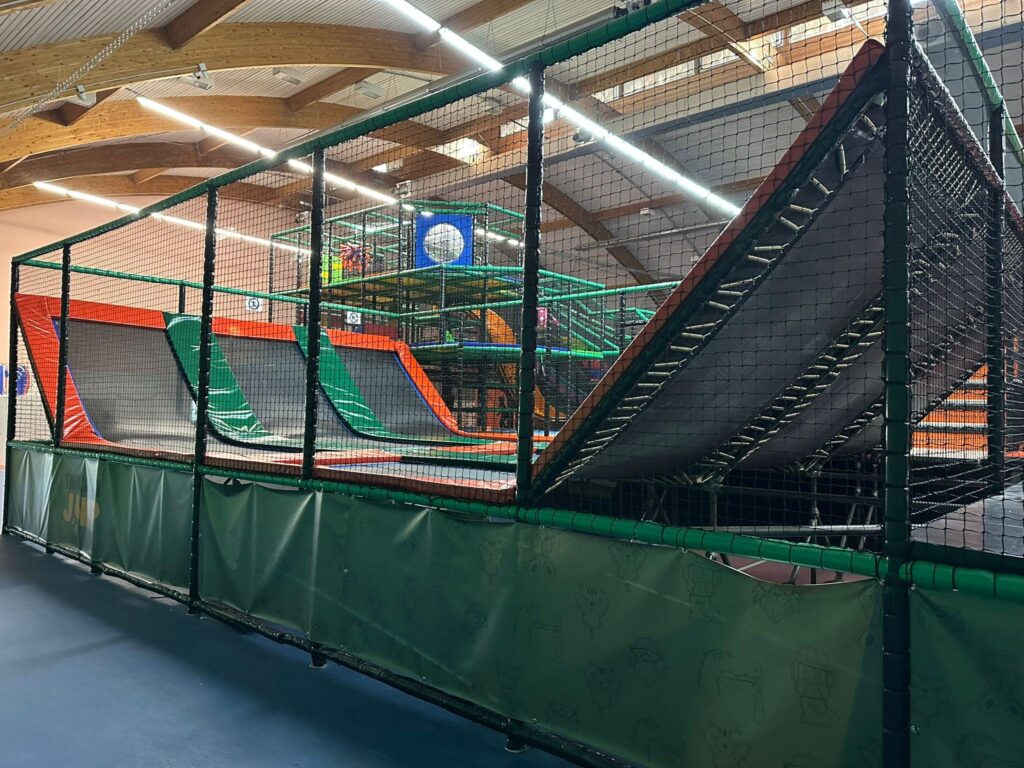 Nejdřív se běží na trampolíny. To je taková klasika, která nikdy neomrzí – hlavně když jsou tam i pěnové kostky a skákací stěny. Kluci si to rozdělí – Maty trénuje salta, Tobík se klouže po skluzavkách. Ano, i ty tam jsou.