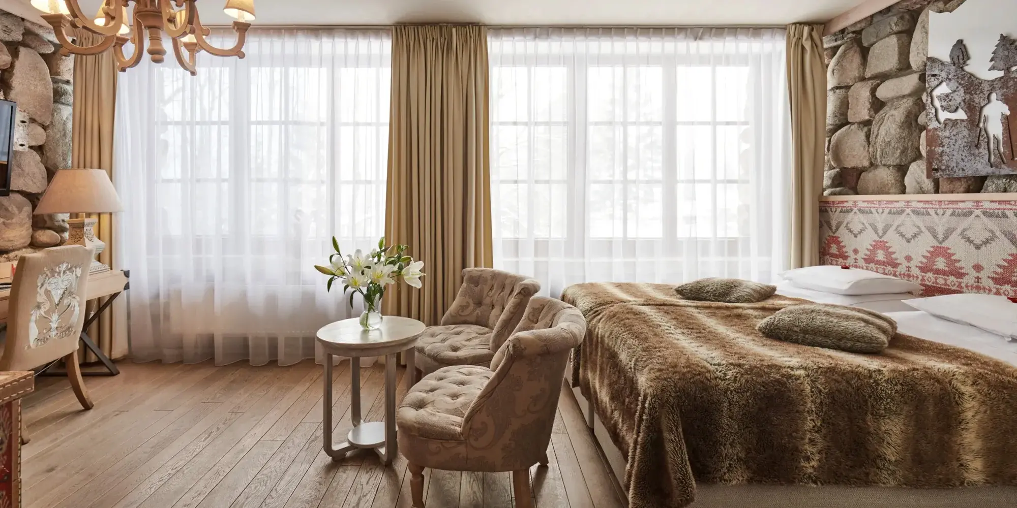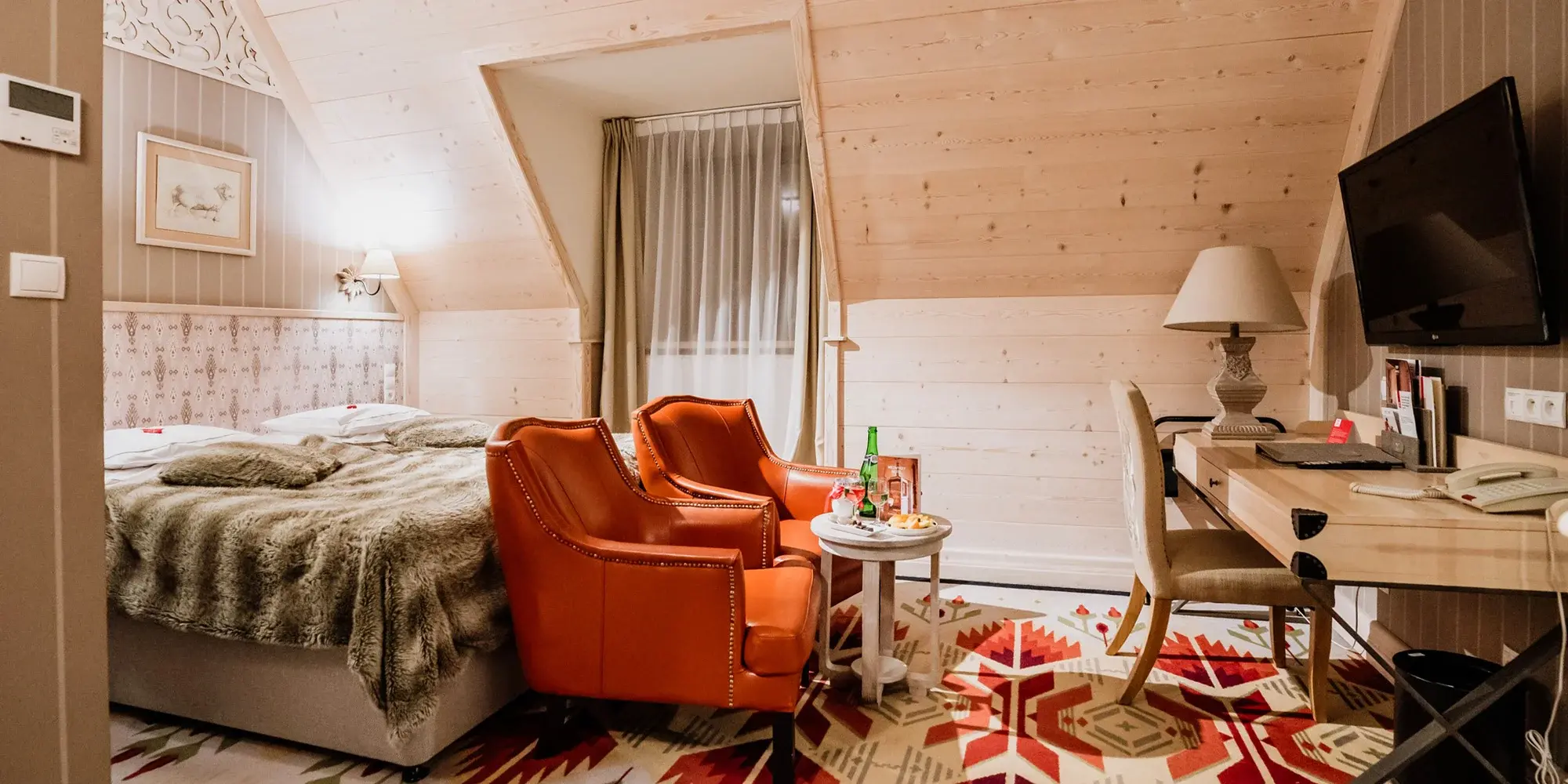 Tenhle pětihvězdičkový hotel se nachází přímo v centru Zakopaného, necelých 400 metrů od slavné ulice Krupówki, takže máte všechno na dosah. A přesto, když za sebou zavřete dveře pokoje, svět venku se vypne.