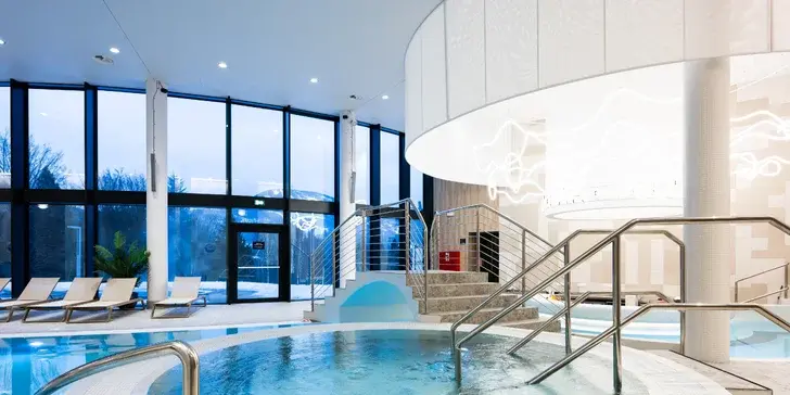 Vstup do wellnessu je neomezený. A ne, to není jen marketingový kec. Vstup platí do bazénové zóny, kde je tobogán, vířivky, divoká řeka, venkovní i vnitřní jacuzzi. A taky do saunového světa Hot & Chilli – ten je jen pro dospělé, takže víte co… klid, teplo, ticho. To beru. Fitness je samozřejmě taky v ceně a s výhledem do přírody – takže ideální místo, kde se přemlouvat, že zvednete aspoň jeden činek.