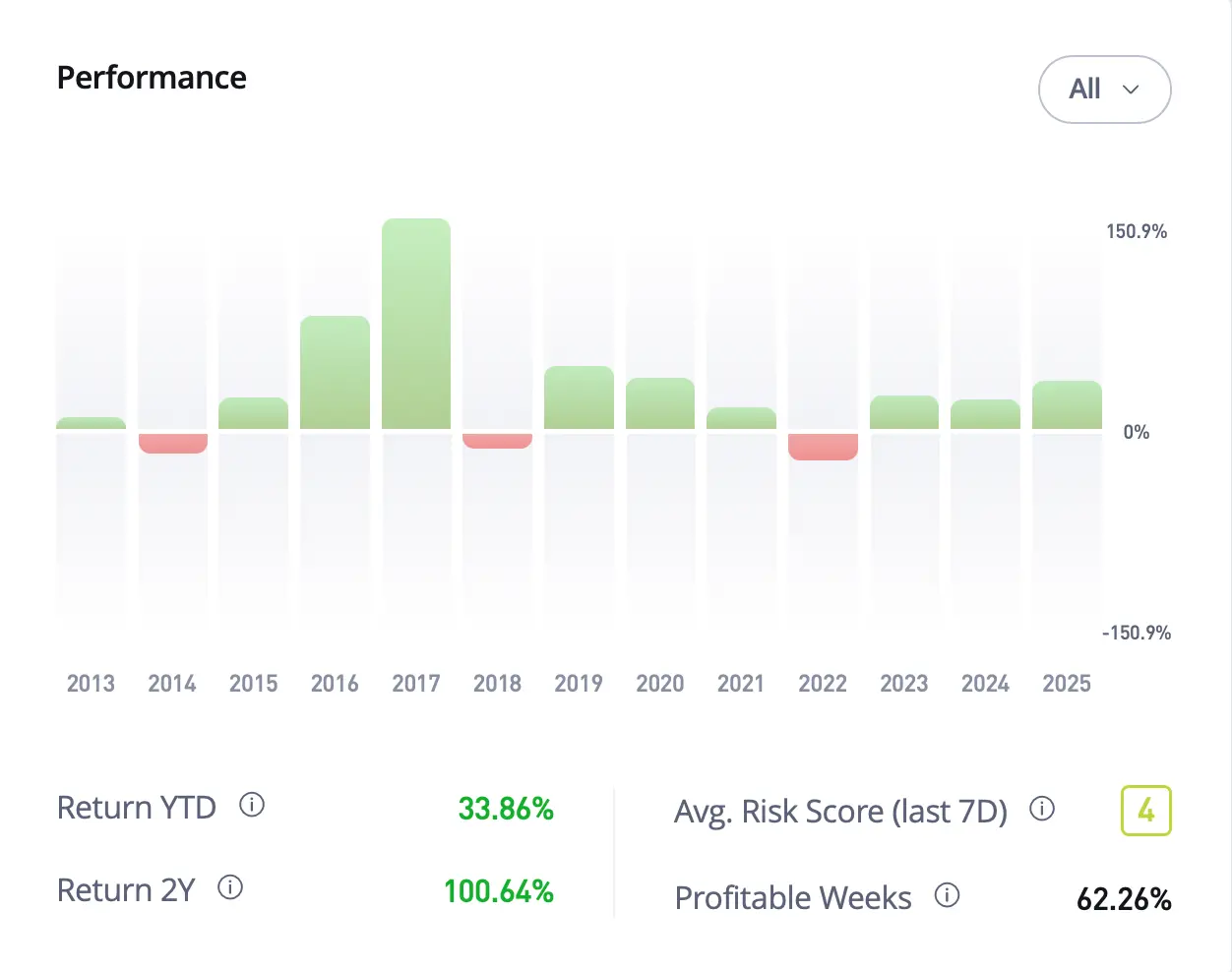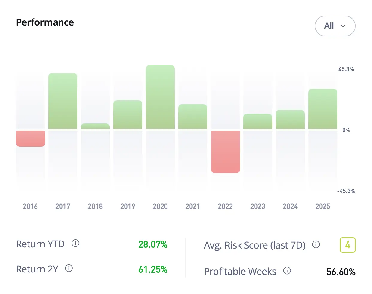 Je ale nutné říct jednu věc: Kopírovat investory pouze podle nejvyššího historického výnosu je často cesta do pekel. Vysoké výnosy s sebou obvykle nesou divoké pády. Pokud hledáte stabilní a klidný růst, musíte se soustředit na ty, kteří mají nízké rizikové skóre.