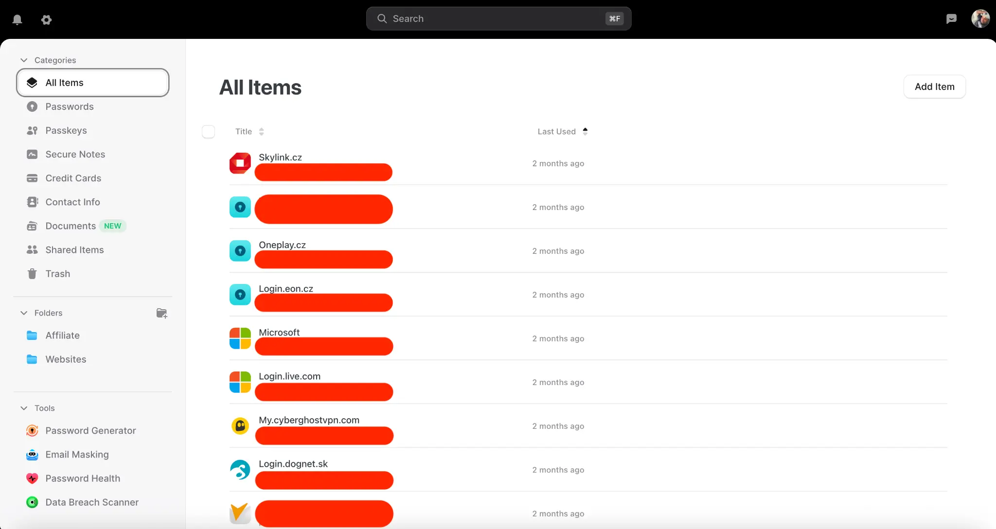 Důležitý detail: k odemknutí vaultu používám hlavní heslo a dvoufázové ověření (MFA). K tomu můžu použít biometriku – obličej na telefonu nebo otisk prstu u Macbooku – podle zařízení. A právě ta kombinace pohodlí a bezpečnosti je za mě absolutní TOP.