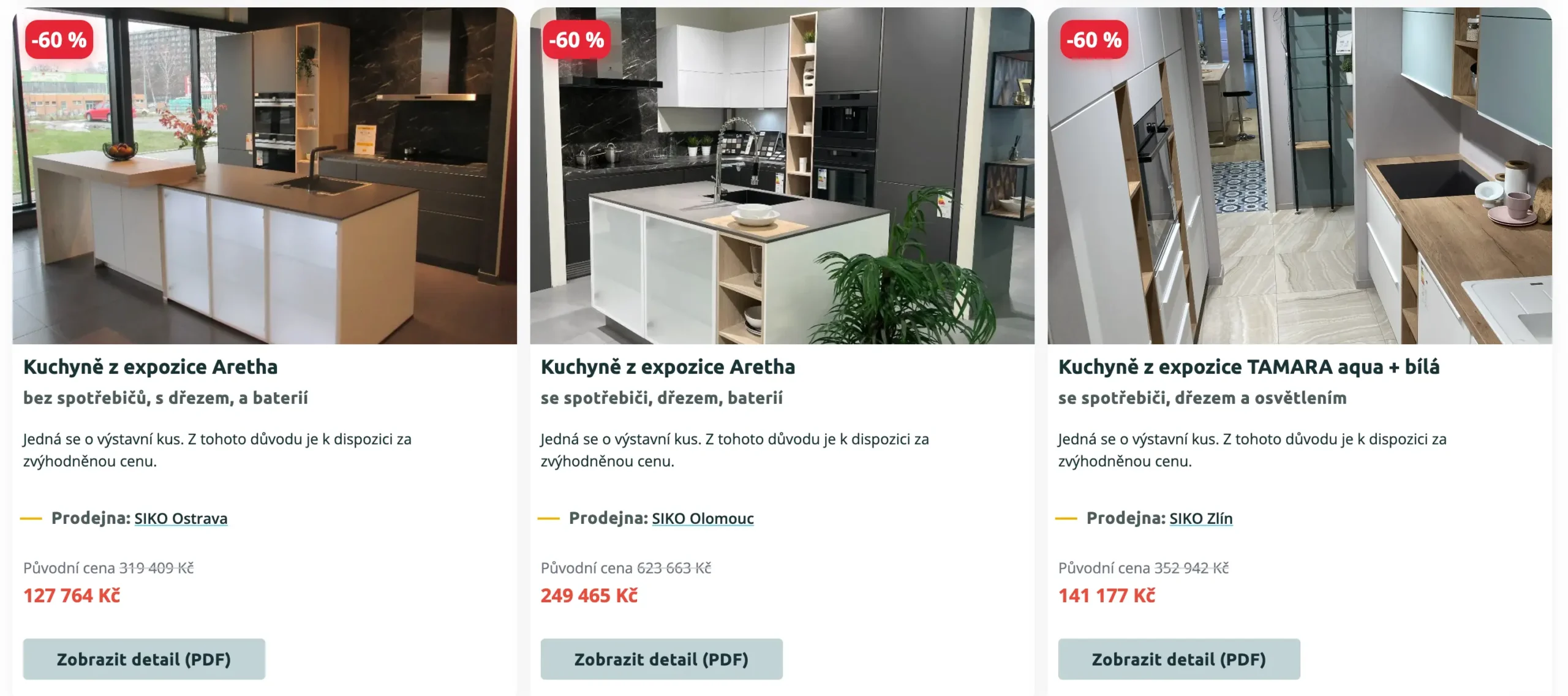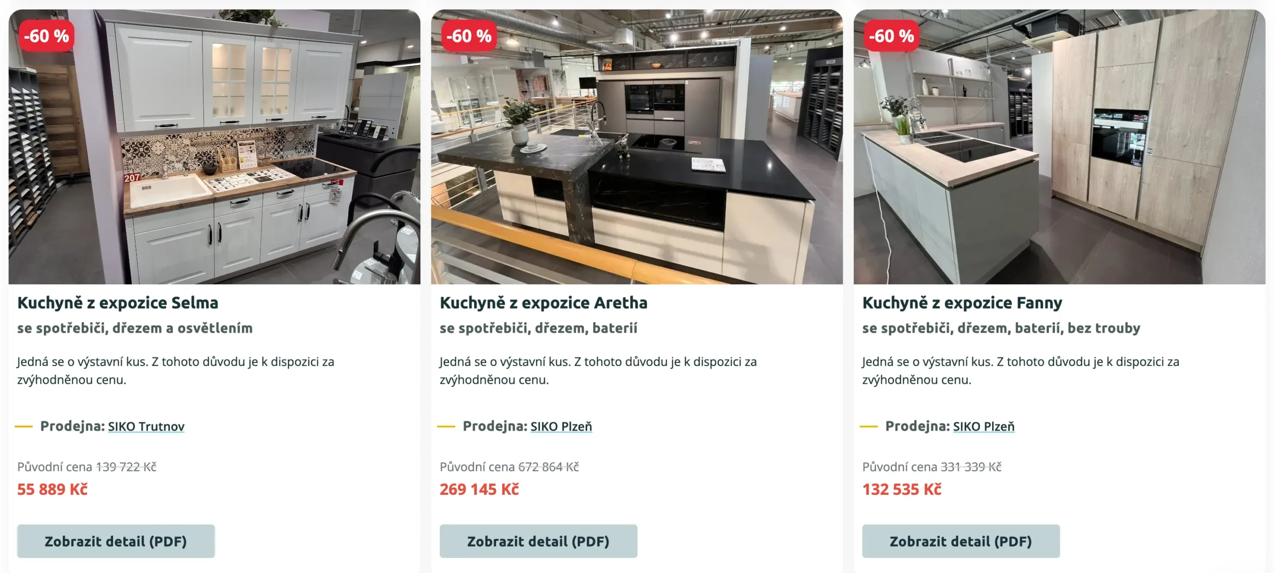 | Kuchyně | Prodejna | Cena po slevě |